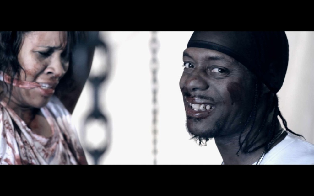 [News segment is heard, mentioning a manhunt for a psychotic killer, all throughout growling is heard]